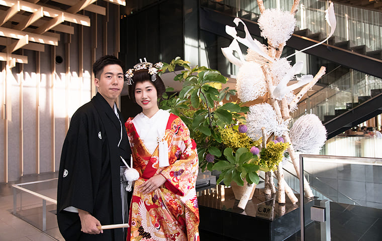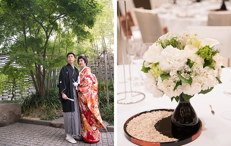 ザ・キャピトルホテル 東急のこの上なく和モダンで上質な雰囲気は、まさに私たちふたりの理想そのもので、四季折々で変わる草月流のいけばなが美しいロビーを見たときはここで和装を着たいと強く思い、心奪われました。