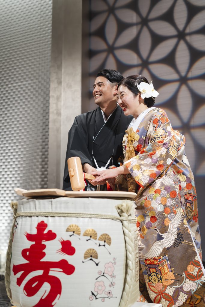 親族や友人に美味しい料理を楽しんで頂きたかったので、派手な余興はせずなるべくシンプルな進行にしました。和装での挙式と披露宴入場だったので装花や席札も和モダンな雰囲気にし、ケーキ入刀ではなく鏡開きを希望しました。お酒を飲めないゲストにも楽しんでいただきたいという想いから、珍しいかもしれませんが鏡開きの樽の中は新米にして、帰りにプチギフトとしてお配りすることにしました。プランナーさんは意見を押し付けることなく、私たちがイメージするものを形にするために細かい箇所まで柔軟に寄り添っていただき準備を進めることができました。
