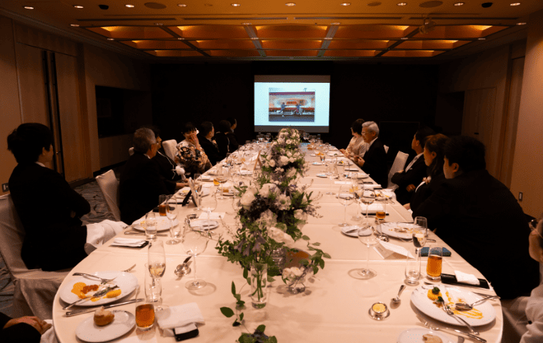 披露宴では、お食事にこだわりました。せっかく日枝神社で挙式ができたので、前菜を日枝神社のモチーフのものに変更していただきました。高齢の親族もいたことからあまりこってりしすぎていない、食べやすいメニューを…とお願いしてメニューにご配慮をいただきました。