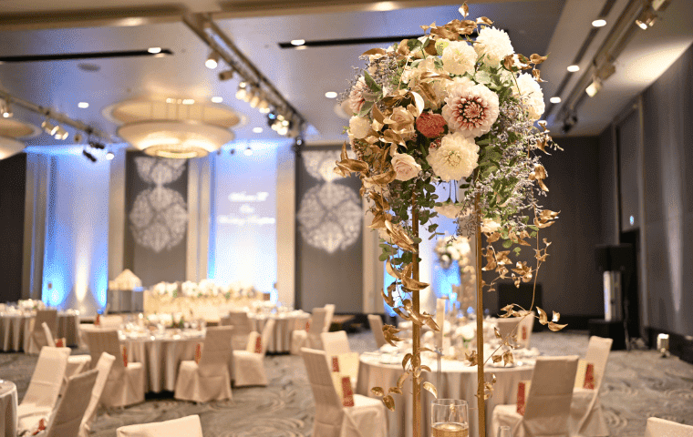 自分たちでは升タワーを思いつくことができなかったと思います。 披露宴の装飾については、新郎やゲストにカラードレスを秘密にしていたこともあり、お花屋さんにおおまかなイメージと希望の色をお願いしただけなのですが、理想以上のものとなりました。