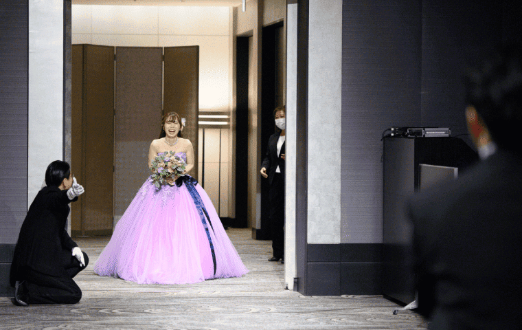 披露宴の前にはウェルカム演出で音と映像のショーを行うことができ、ゲストからも待ち時間も楽しかったと言ってもらえました。