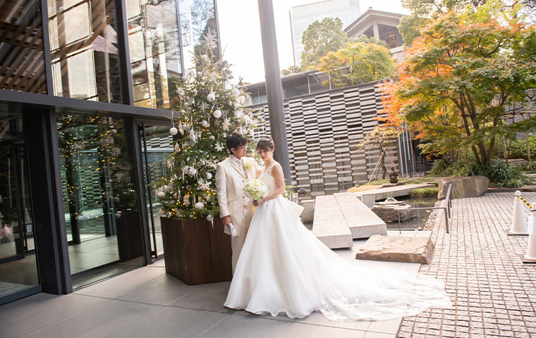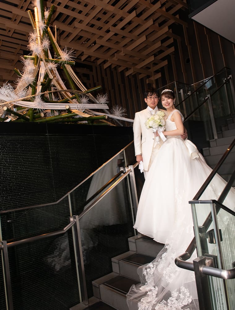 七五三など幼い頃から思い出のある日枝神社での結婚式を検討していた際に、両親からの勧めもあり、ブライダルフェアに参加しました。この日が初めての訪問でしたが、プランナーさん・料理長さんの温かく丁寧なお人柄、目でも楽しめて美味しいお料理、綺麗で高級感のある空間、あらゆるものに二人とも強く惹かれました。また、もともと親族婚で計画していたこともあり、少数婚が得意であるという点もキャピトルホテル東急さんに決めたポイントとなりました。